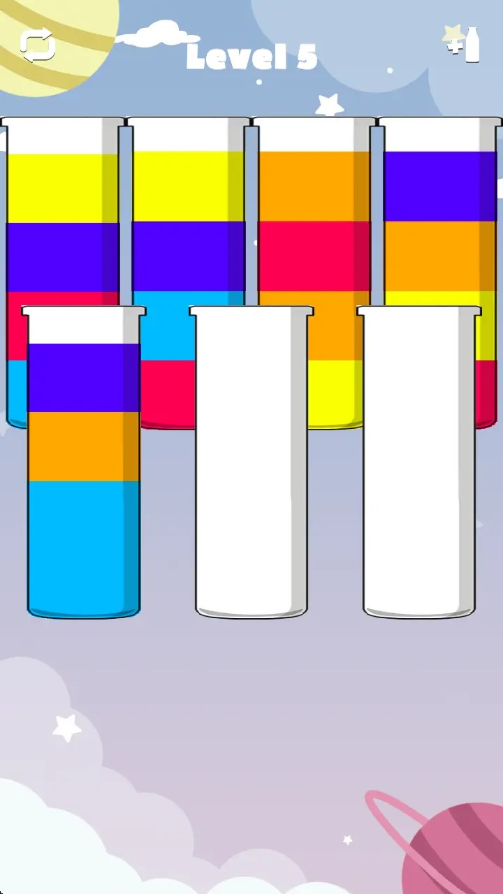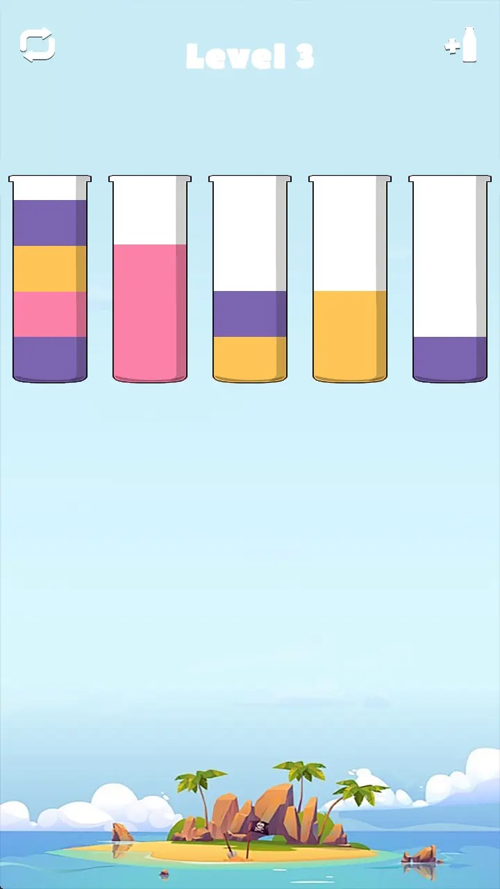 、合理安排每一步操作,不仅考验对液体流动逻辑的判断 ,这种极具策略性的玩法,也激发了他们在有限条件下寻求最优解的思考潜能 。用最少的操作步骤实现同色液体的聚合。还具有良好的教育意义